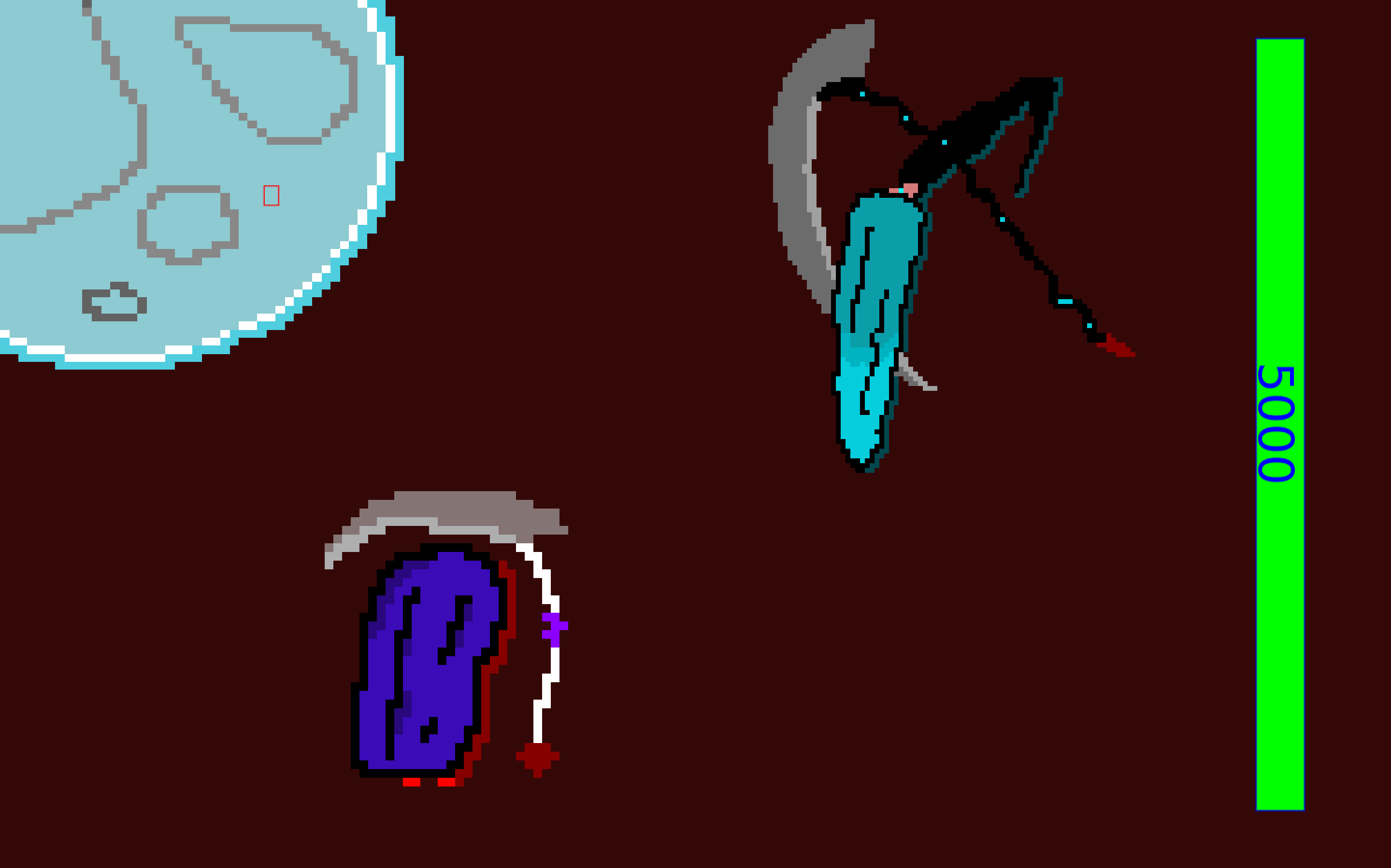 Controls: wasd to move, Enter to slash, RMB to select, LMB to return, Escape to quit